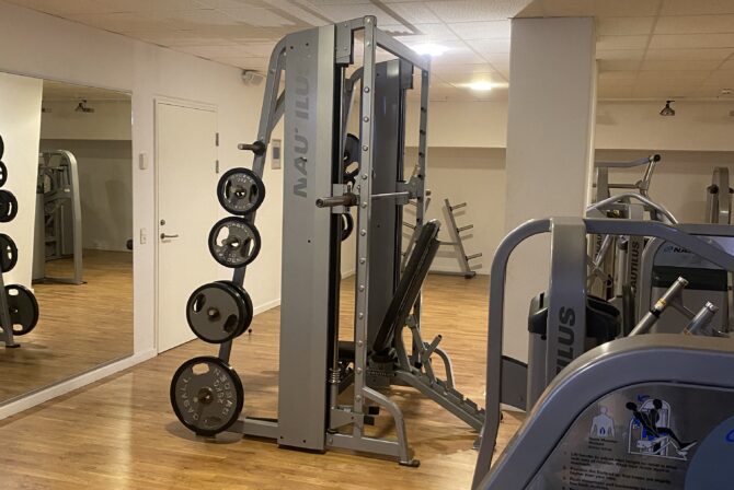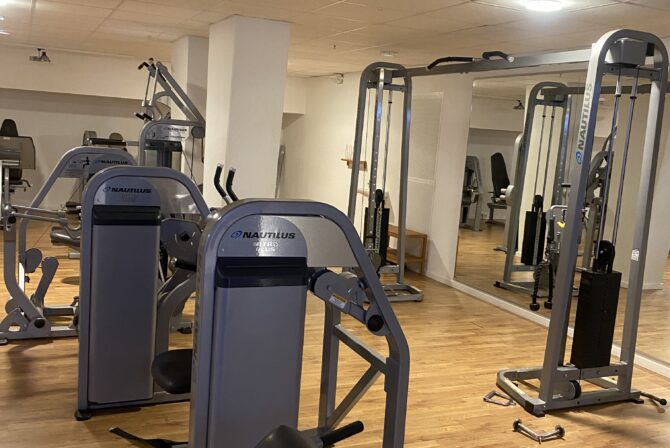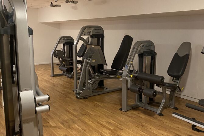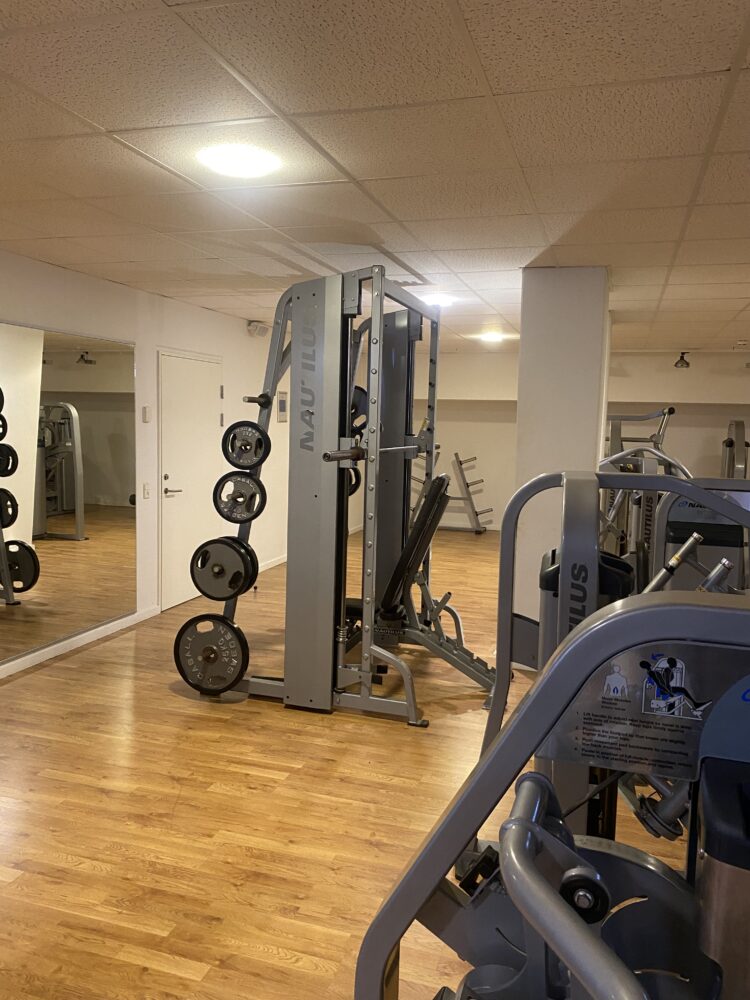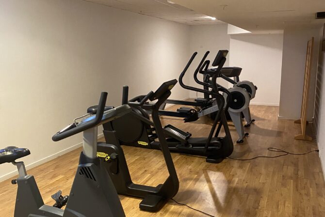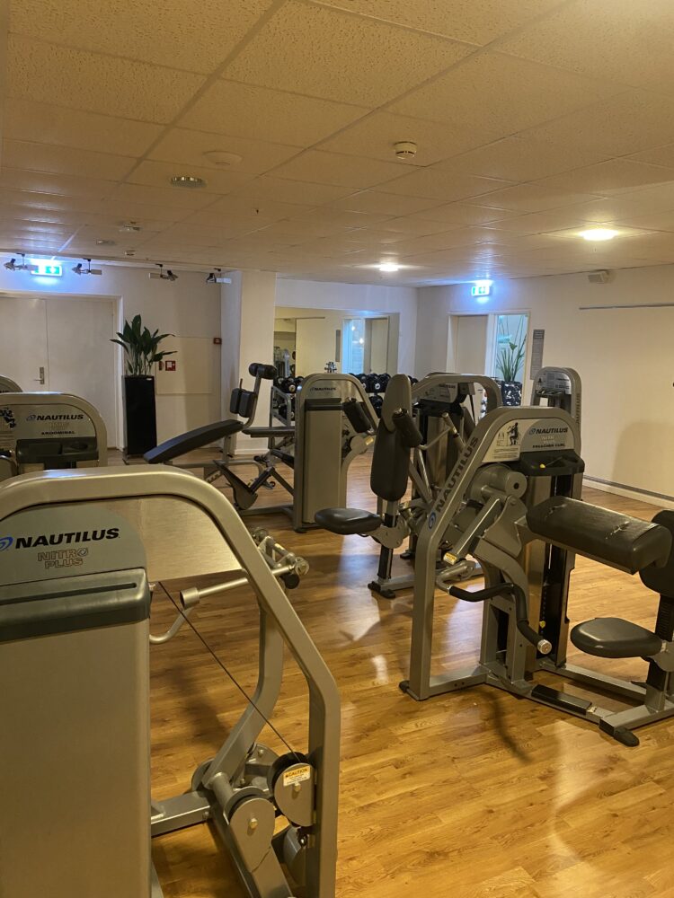 Betaler du dagsentré til vores wellness og spa, får du også fri adgang til fitness, som ligger i kælderen.